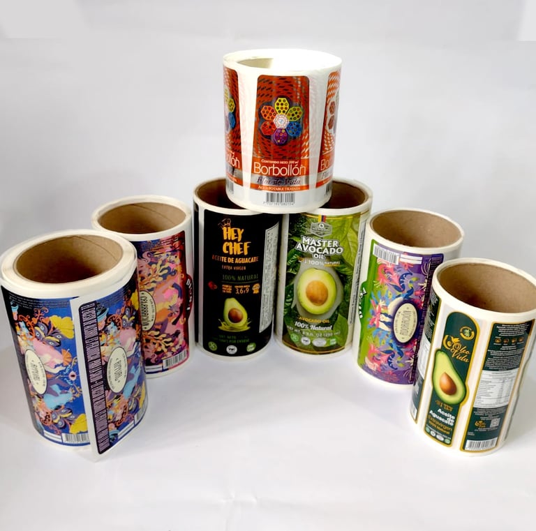 En DracoPrint fabricamos etiquetas adhesivas totalmente personalizadas, ideales para productos químicos, cosméticos, bebidas, alimentos, limpieza, y más. Imprimimos en alta calidad con acabados que realzan tu diseño y protegen tu etiqueta